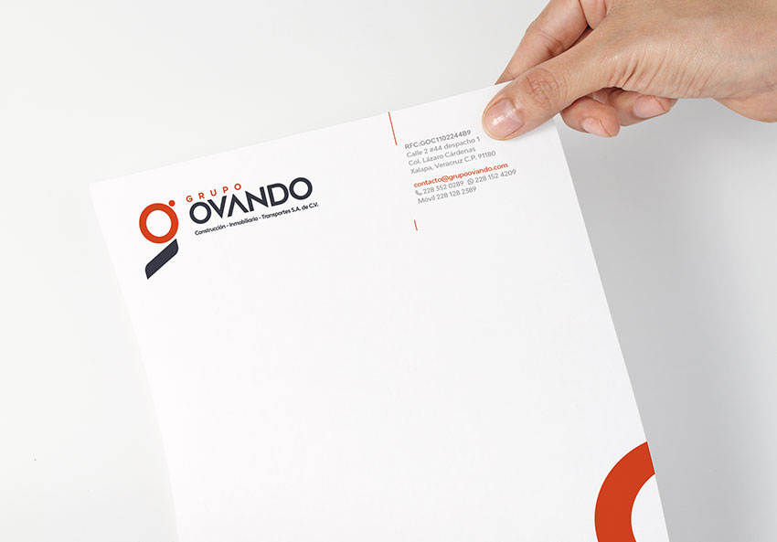 Rediseño de identidad para Grupo Ovando, empresa dedicada a la construcción y obra civil Diseño de branding que incluye papelería institucional, uniformes y unidades utilitarias.
